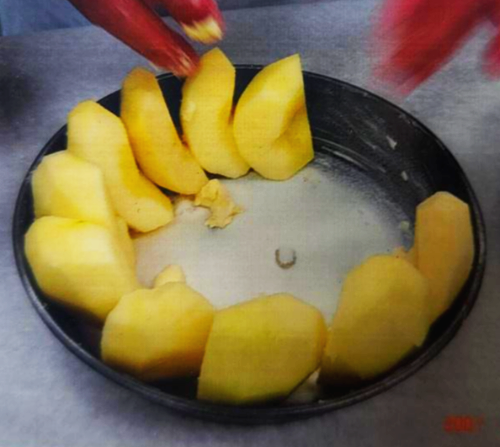 그 위에 자른 사과를 빽빽이 올린다.