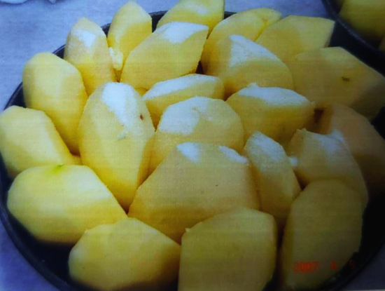 2) 사과 위에 남은 버터를 올리고 설탕을 뿌린다.